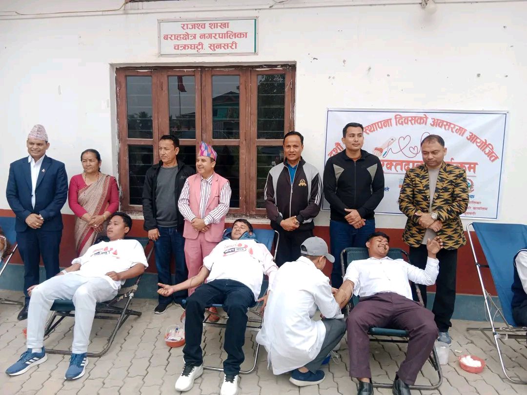 पालिकाको दशौं स्थापना दिवसको अवसरमा सुनसरीको वराहक्षेत्र नगरपालिकाले रक्तदान कार्यक्रम आयोजना गरेको छ ।