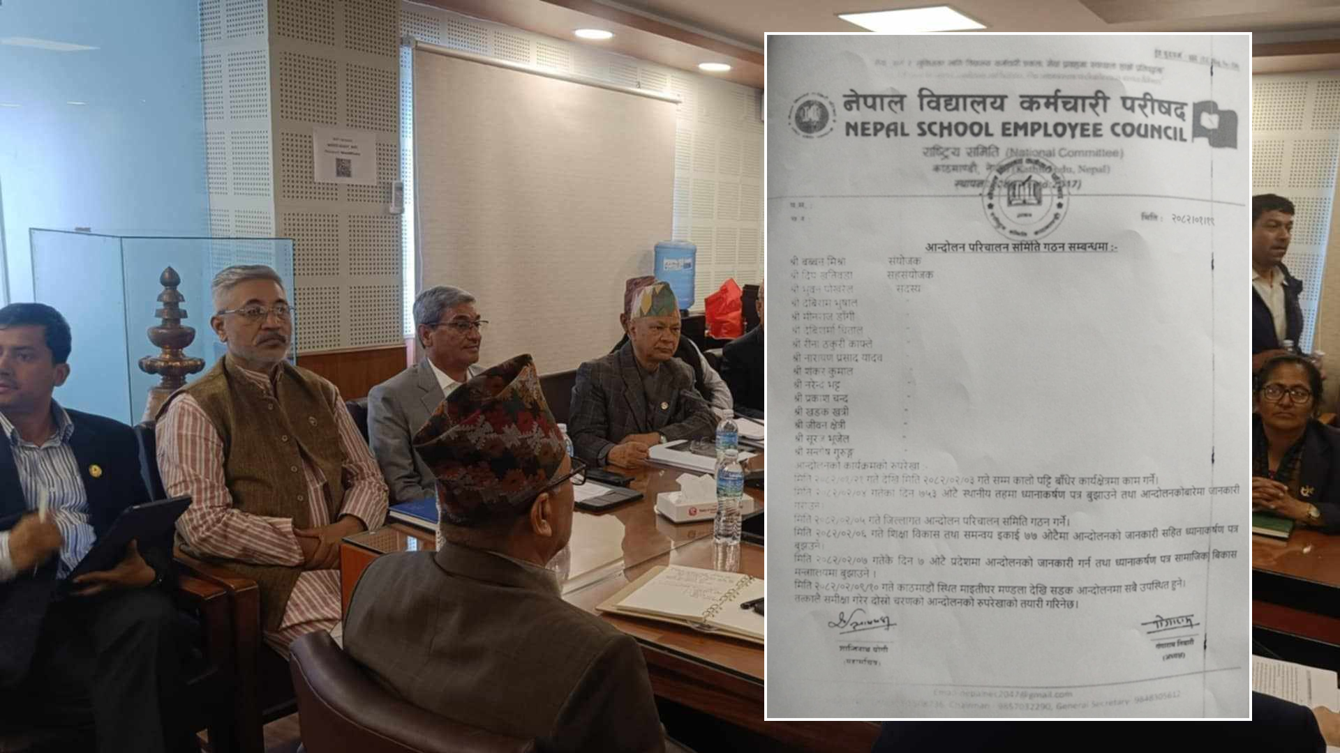 नेपाल सरकार र नेपाल शिक्षक महासंघबीच भएको सहमतिप्रति आपत्ति जनाउँदै नेपाल विद्यालय कर्मचारी परिषद्ले आन्दोलनका कार्यक्रम घोषणा गरेको छ ।