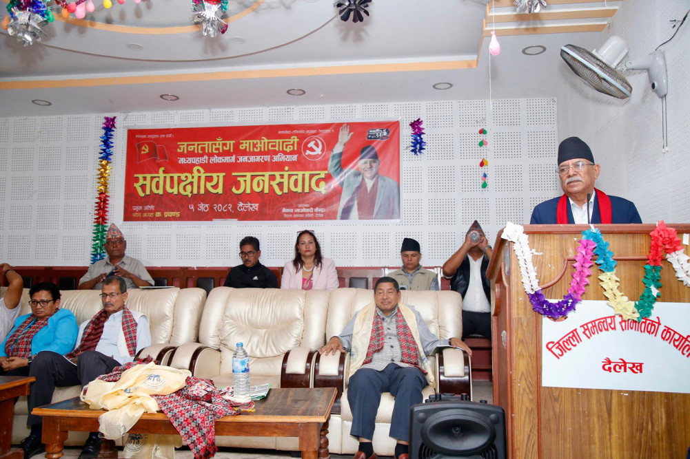 दैलेख — माओवादीका अध्यक्ष एवं पूर्वप्रधानमन्त्री पुष्पकमल दाहालले मध्यपहाडी लोकमार्ग अभियान राष्ट्रको अभियान भएको बताएका छन् । मध्यपहाडी लोकमार्ग अभियानको उद्देश्य, यसको राष्ट्रिय महत्त्व र अभियानको क्रममा देशभर प्राप्त भएको जनसमर्थन र सम्मानबारे प्रकाश पार्दै उनले भने, ‘यो अभियान अब केबल एउटा पार्टीको मात्र नभई, राष्ट्रकै साझा अभियान बनिसकेको छ ।’