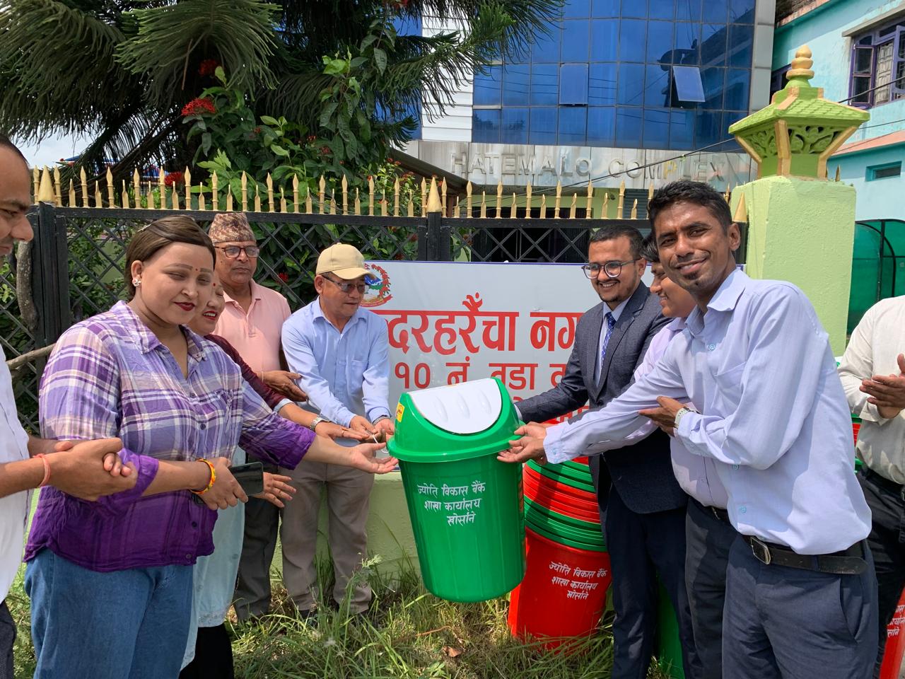 ज्योति विकास बैंक खोर्साने शाखाले १० नं वार्ड कार्यालयलाइ प्रदान गर्यो २५ थान डस्बिन