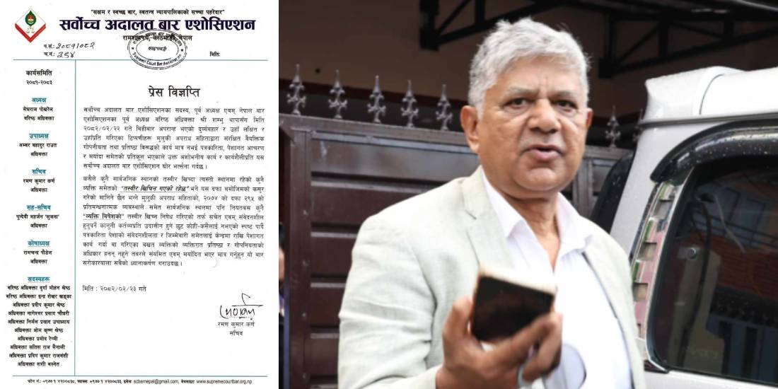 वरिष्ठ अधिवक्ता तथा नेपाल बारका पूर्वअध्यक्ष शम्भु थापाले बिहीबार नेपाल प्रेसकर्मी उमेश कार्कीमाथि दुर्व्यवहार गरेको घटनामा सर्वोच्च बारको धम्कीपूर्ण र प्रेस स्वतन्त्रविरोधी वक्तव्य आएको छ । तर, नेपाल पत्रकार महासंघ त्यसबारे मौन छ ।