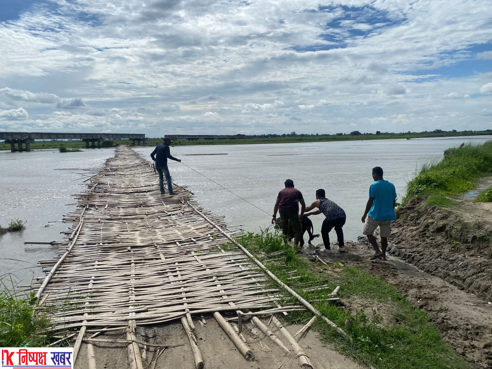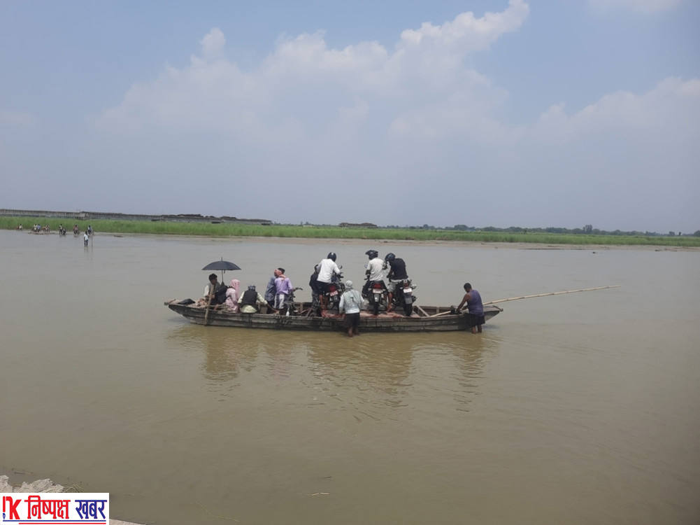 गौरीगन्ज, झापा — मोरङको रतुवामाई नगरपालिकाका सुनिल सिंह राजपूत आइतबार दिउँसो कनकाई नदीको बगरमा डुंगा पर्खिरहेका थिए । विवाहको निम्तो दिन झापा गाउँपालिका जान लागेका उनी अलमलमा थिए । उनले भने, ‘पुल त कहिले बन्ने हो थाहा छैन । बाँसको फड्के थियो, त्यो पनि बगायो । अब डुंगा चढेर जानुपर्यो ।’
