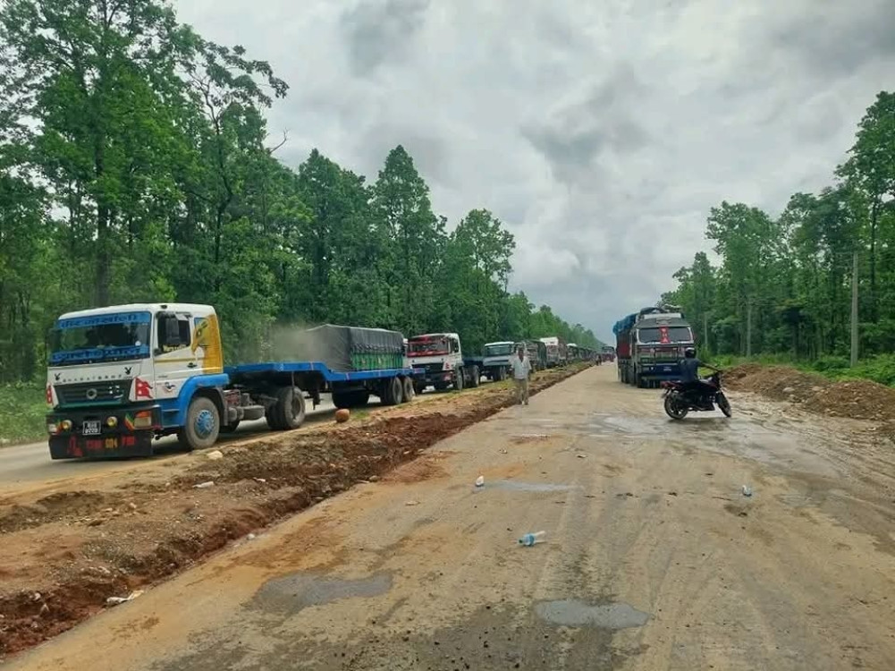 पानी नपरेर राजमार्ग सुक्खा भएपछि दुई जिल्लाका विभिन्न स्थानमा रोकिएका सबै गाडी दाउन्ने वारपार भएका छन् ।