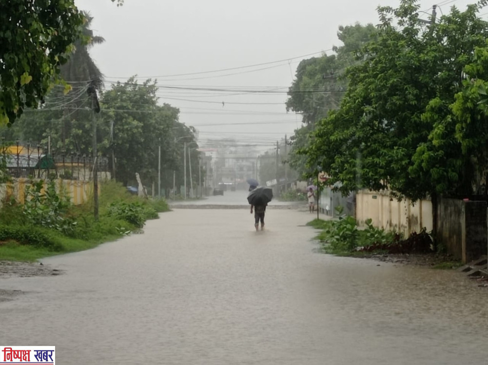 अविरल वर्षाका कारण धनगढी जलमग्न