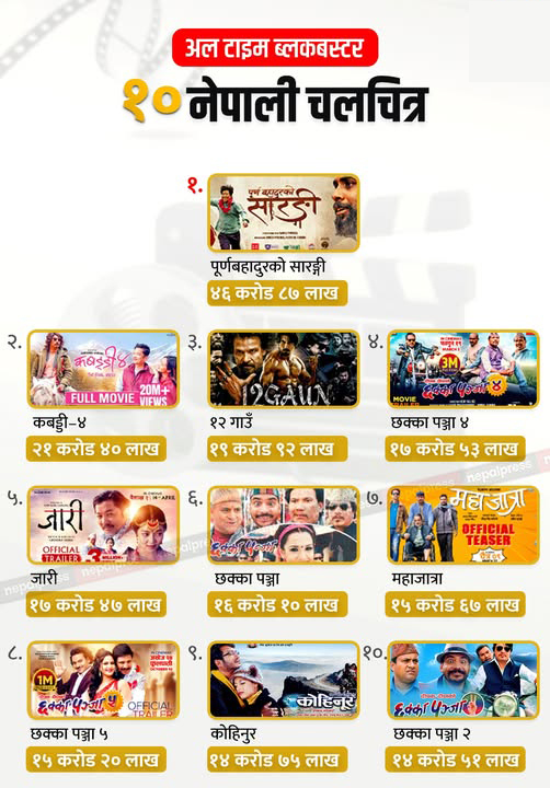 अल टाइम ब्लकबस्टर १० नेपाली चलचित्र