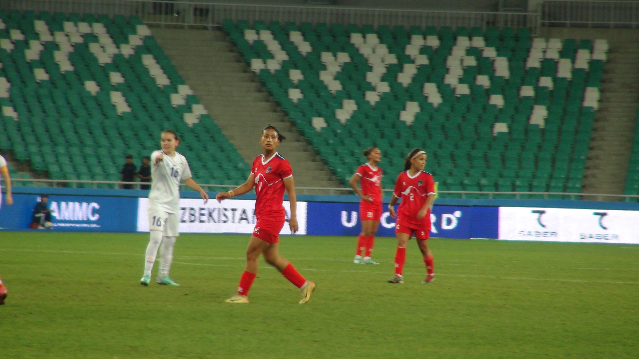 तर ३८औं मिनेटमा उज्बेकिस्तानले पेनाल्टी पायो, जब नेपाली डिफेन्डर सरस्वती हमालले ह्याण्ड गरिन्। सो अवसरमा शोएमोभले गोल गर्दै उज्बेकको अग्रता पुनः फराकिलो बनाइन्।