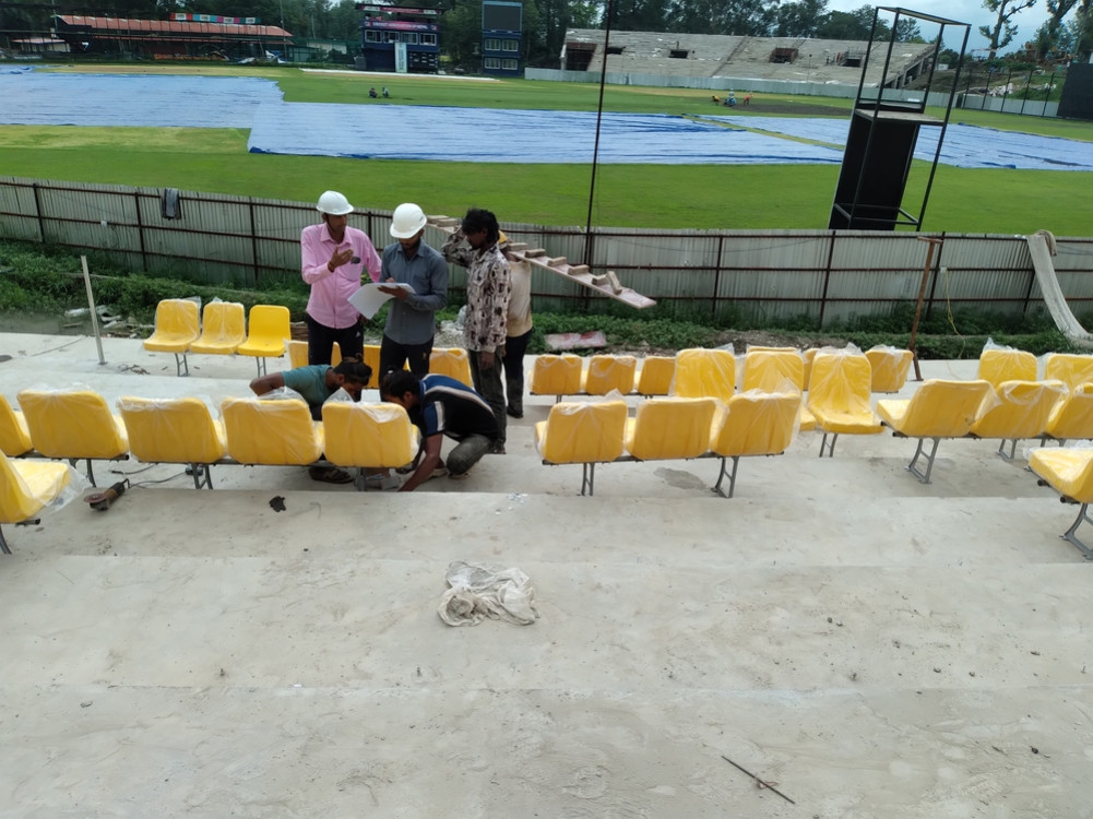 त्रिवि क्रिकेट मैदानमा कुर्सी राख्न थालियो