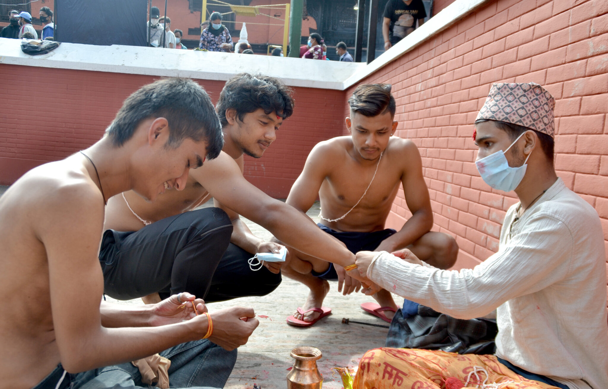 तागाधारीले यज्ञोपवीत धारण गर्दै