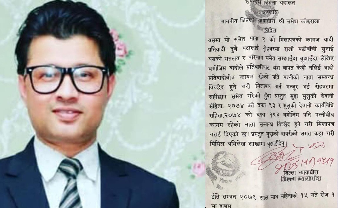रास्वपा उम्मेदवार डा. थापाले सार्वजनिक गरे वैवाहिक सम्बन्ध विच्छेदको कागज