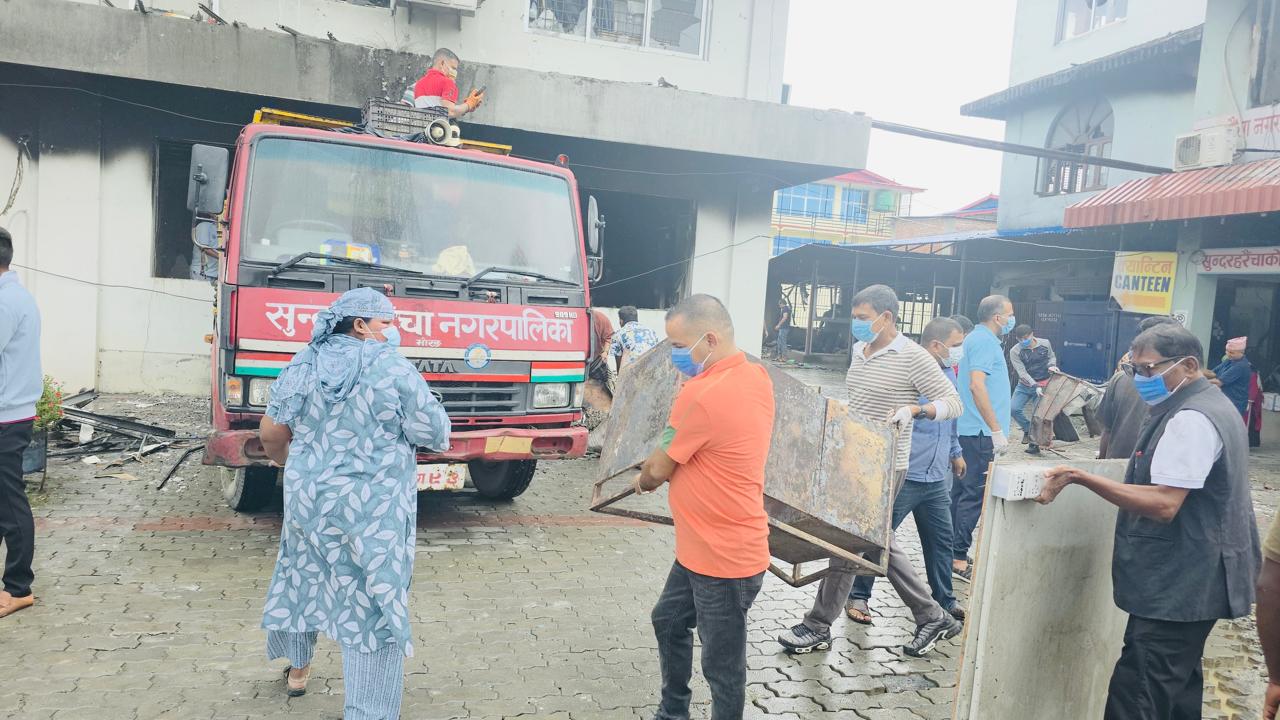 आफ्नो घर जले पनि संस्थापक नगरप्रमुख ढकाल उच्च मनोबलसहित नगरपालिका सरसफाइमा सक्रिय