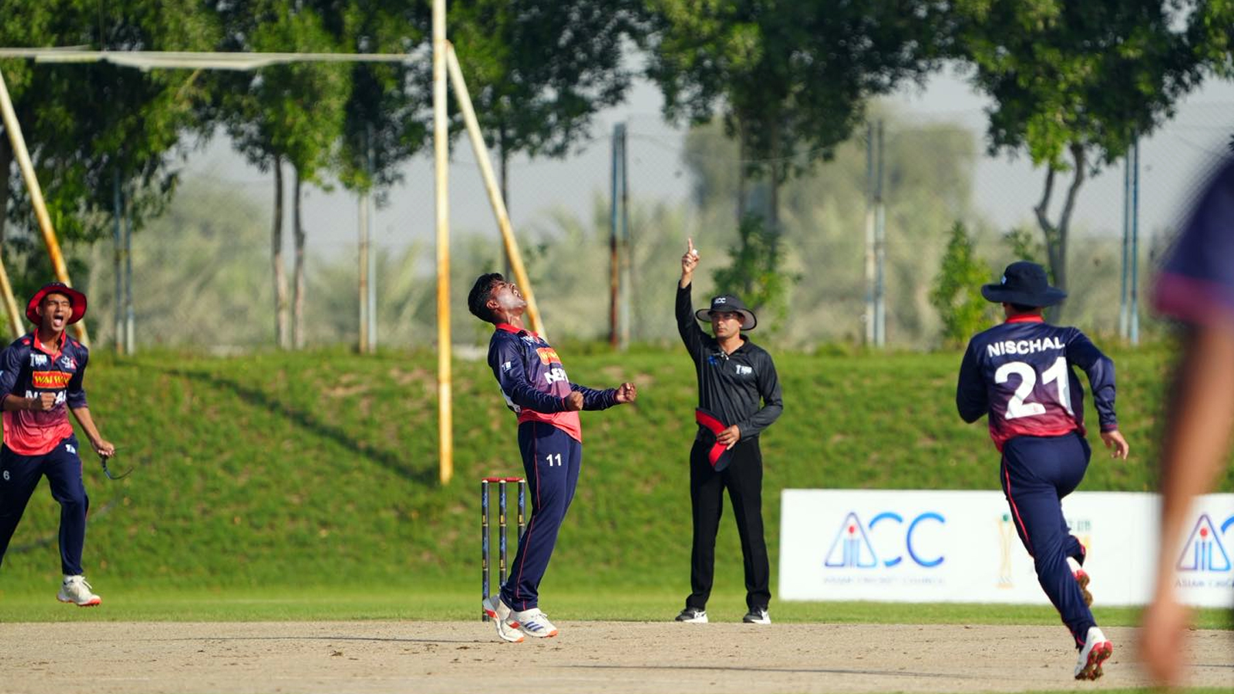 नेपालका लागि नितिस कुमार पटेलले ४, चन्दन रामले ३, कप्तान अशोक धामी, रोशन विश्वकर्मा र अपराजित पौडेलले एक/एक विकेट लिए ।