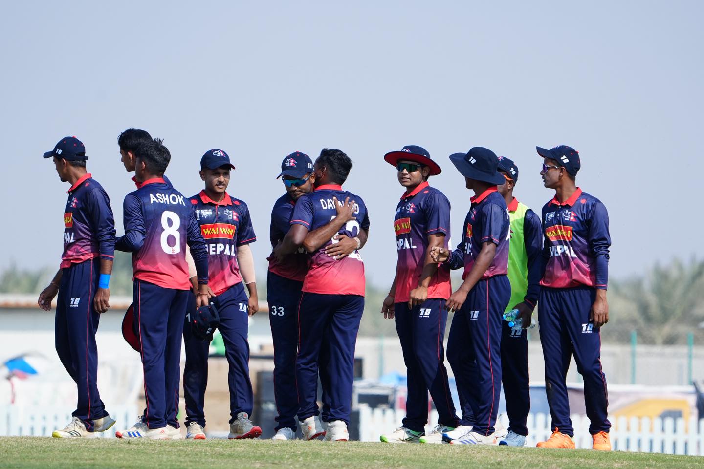 नेपालका लागि कप्तान अशोक धामीले ३४, आशिष लुहार र रोशन विश्वकर्माले २५-२५ र वंश क्षेत्रीले ११ रन बनाए । यूएईका लागि युगजय शर्मा र अली असगर सम्सले तीन-तीन तथा उद्दिश सुरी र नुरउल्लाह अयोबीले दुई-दुई विकेट लिए ।