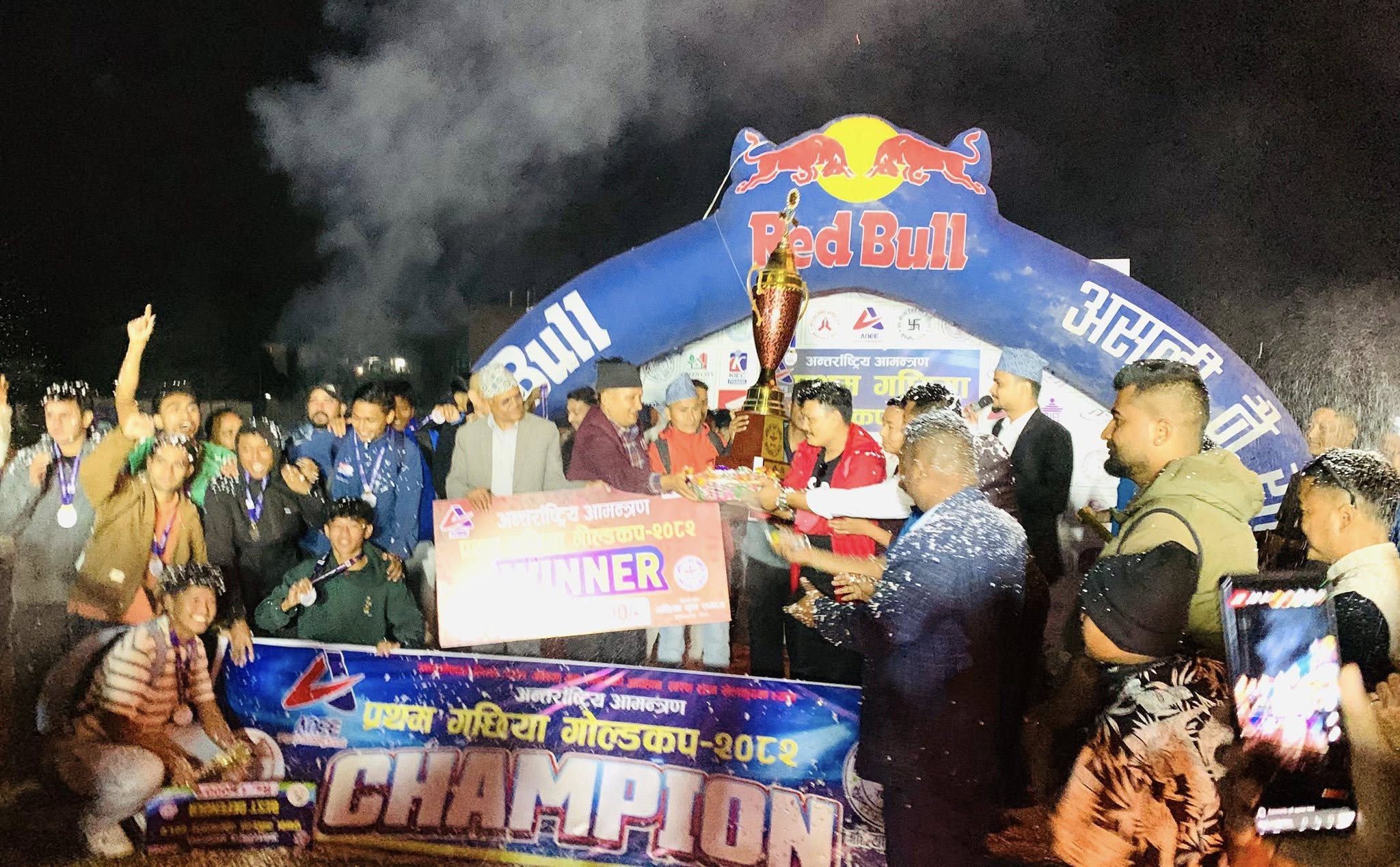 प्रथम अन्तर्राष्ट्रिय आमन्त्रण गछिया गोल्डकपको उपाधि राष्ट्रिय जागृति क्लब इटहरीले जितेको छ। सोमबार भएको फाइनलमा जागृतिले गाईघाट युनाइटेड उदयपुरलाई १–० ले पराजित गर्दै शीर्षस्थान हात पारेको हो।